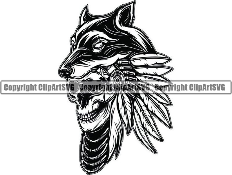 Indian Skull 6 Wolf Headdress Native American Warrior Feather Etsy Osterreich